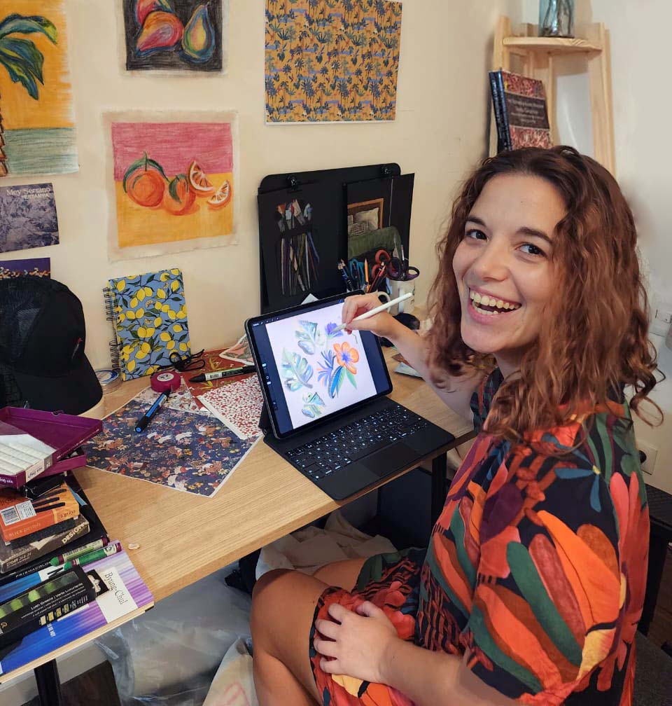 Victoria Alonso is a Buenos Aires–based surface pattern designer and the founder of KA Print Studio. Her work brings bold color, joy, and playful energy to everyday products, blending expressive shapes, thoughtful details, and a strong sense of composition.