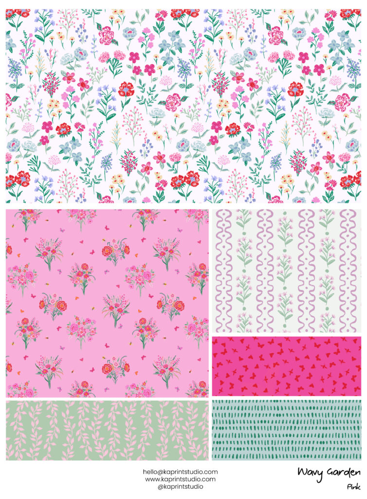 Pastel Garden is a soft, joyful collection inspired by blooming gardens and gentle color palettes. Featuring hand-drawn florals, playful coordinates, and versatile repeats, these designs are created for stationery, home décor, and fabrics.Available for licensing.